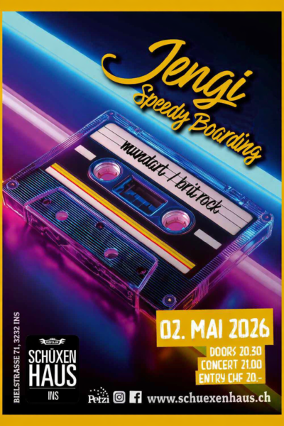Freut euch auf einen energiegeladenen Abend mit Speedy Boarding und Jengi! Zwei Acts, die für mitreissende Sounds, starke Vibes und beste Stimmung sorgen. Von treibenden Beats bis hin zu eingängigen Melodien – hier kommt jeder auf seine Kosten.
