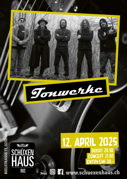 Sa 12.04. 20:30 | Schüxenhaus Ins Ins | Hardrock, Rock Tonwerke (GER) Tonwerke (GER) instrumental prog rock/post metal https://www.youtube.com/@tonwerke1 doors 20.30 concert 21.30 entry 20.-